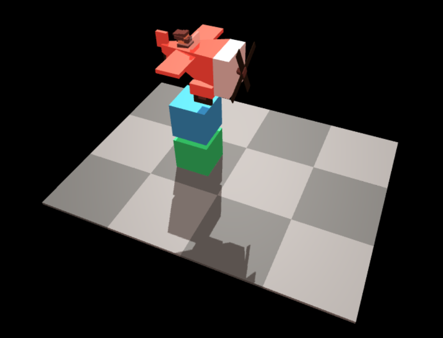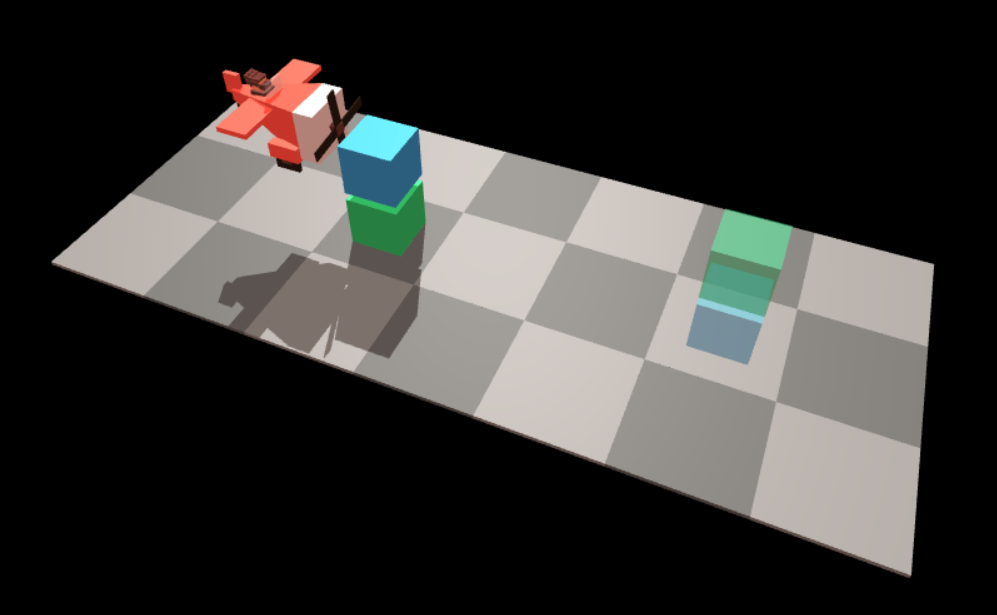 释放 获取的方块 于飞机下. 如果飞机在一列方块上 被获取的方块 会释放在顶部.